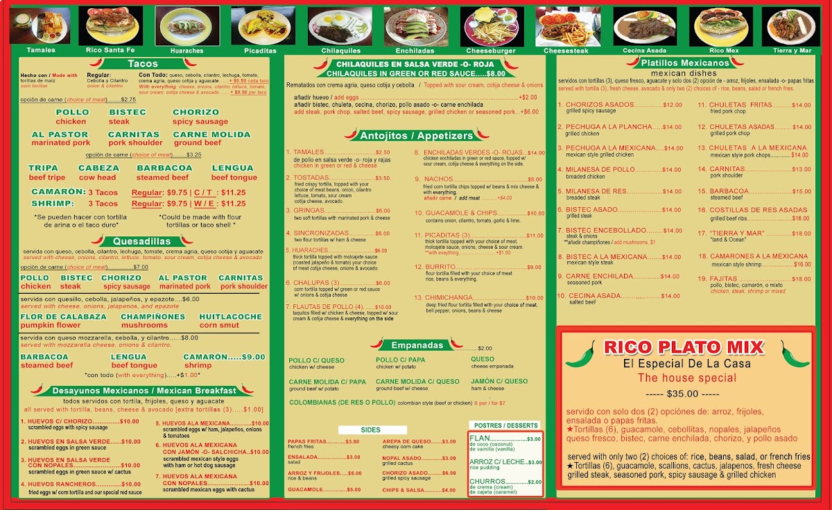 If you're looking for a spot to satisfy your cravings for authentic Mexican flavors, look no further than Rico Taco Mex 2 Menu. Located at 58 Carr Ave in Keansburg, NJ, this place is all about bringing bold and vibrant dishes right to your table. Whether you're in the mood for something hearty like their sizzling fajitas or craving the crispy perfection of tacos, there's something for everyone. Their menu offers a variety of options, from juicy carne asada to flavorful shrimp tacos, ensuring a delicious experience for all tastes. Don’t miss out on their homemade salsas and sides that bring that extra kick to your meal. If you're all about fresh, vibrant flavors with a warm, welcoming vibe, this is the spot to be.